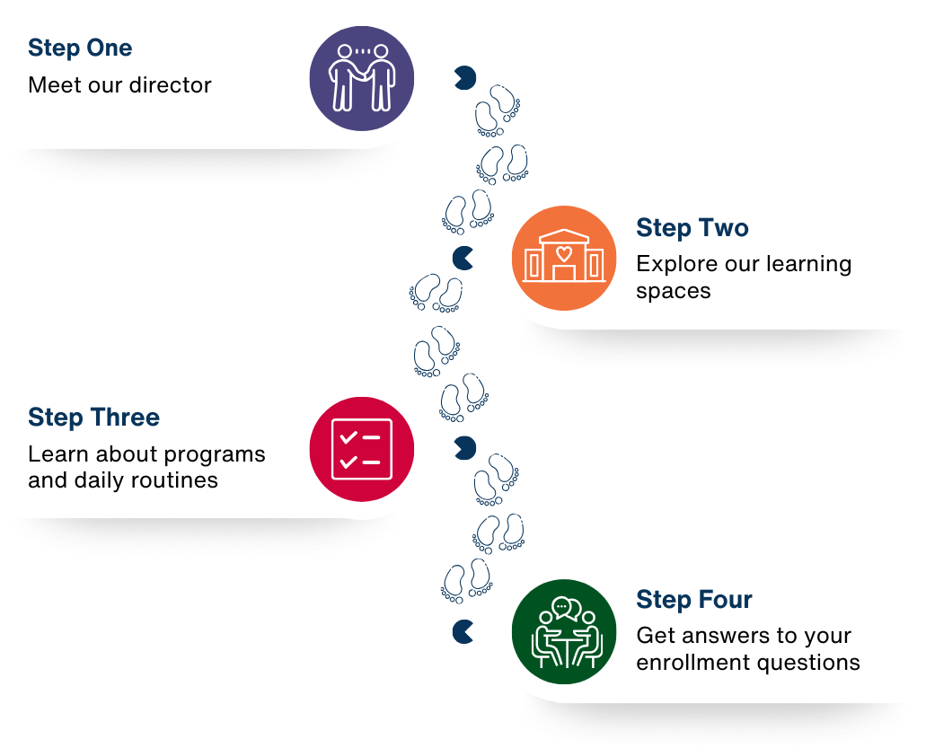 We invite you to visit Bright Steps Learning Academy and experience our learning environment in person. Meet our Director, explore our classrooms, and discover the programs, care, and support designed for your child’s growth.